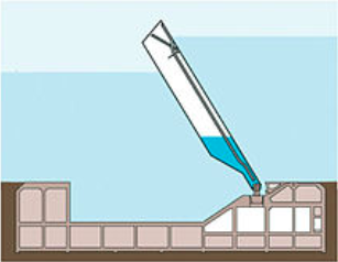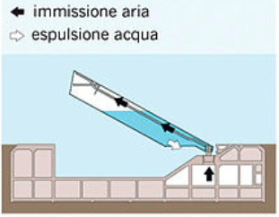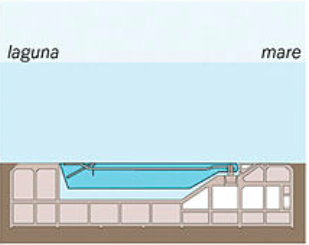 The picture above shows the method by which the MOSE dam extends vertically to prevent flood waters from entering Venice.